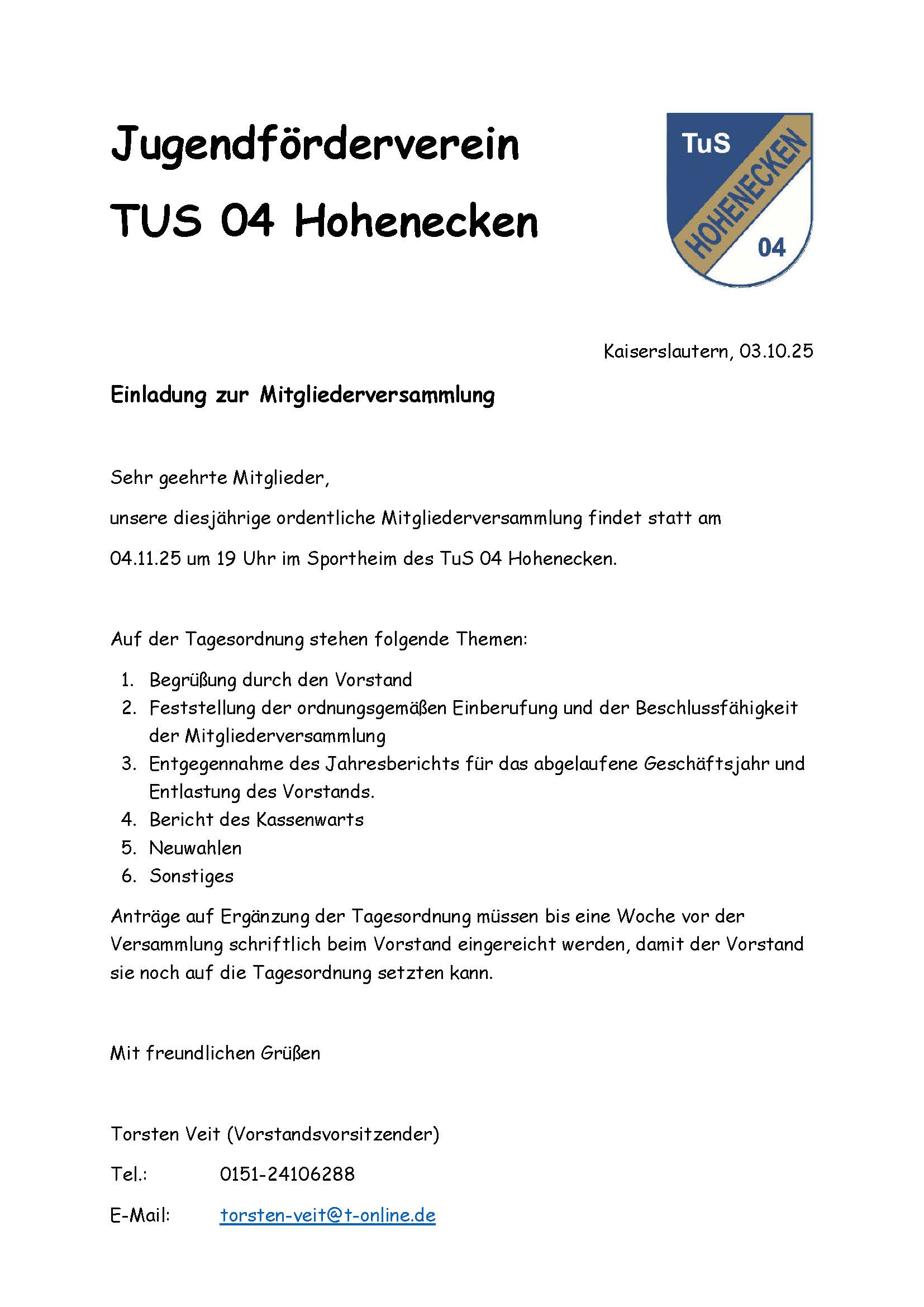 Jugendförderverein Mitgliederversammlung am 04.11.2025
